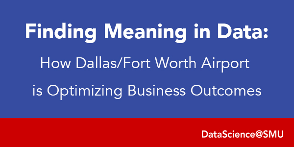 Around the world, the airline industry is continually seeking new methods to improve operations and enhance the customer experience. And increasingly, it’s using big data and data analytics to do it. For Immersion 2016, DataScience@SMU invited Steve Shaffer External link , CIO of Dallas/Fort Worth International Airport External link (DFW), to share his thoughts on ways to find meaning in data in relation to the airline industry. Here, we’ll highlight the opportunities and advantages for big data and analytics in airport optimization that Shaffer sees — as well as how other players in the industry are aligning with such efforts.